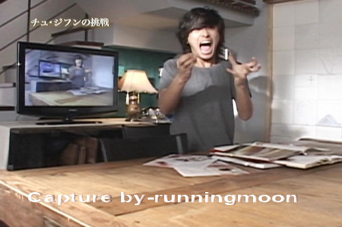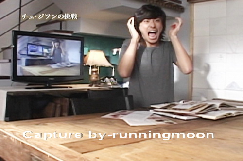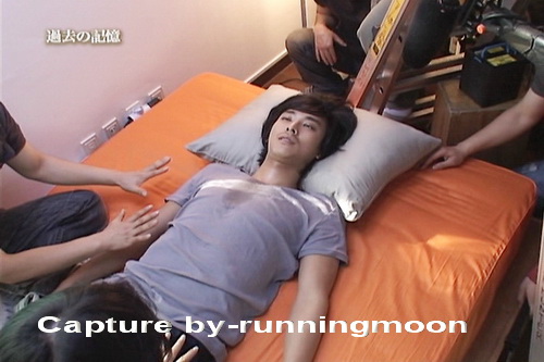 這幕其實是社長和導演在討論要如何傳神的表達出剛從惡夢中醒來,驚魂未定時,又被保鑣再嚇一次.