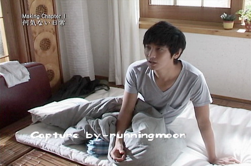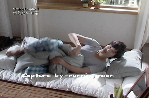 開拍前,阿呆很認真的和導演仔細討論細節著.然而,還沒開始排演前,這大孩子是在床上玩得很樂的.